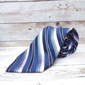 ◎Vゾーンを素敵に演出】MICHAEL KORS マイケルコース レジメンタル ネクタイ|ネイビー・パープルシルバー シルク100% USED古着 ポイント消化