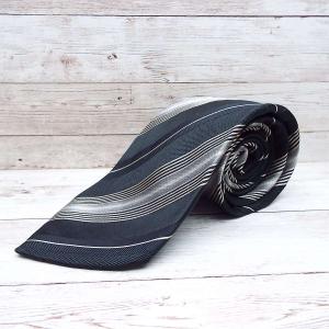 ◎イタリア製 GIORGIO ARMANI ジョルジオ・アルマーニ ストライプ柄ネクタイ ブラック・シルバー シルク100%【USED】メンズ古着 ポイント消化