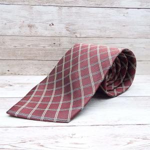 ◎ブラックスーツに◎ PIERRE LORRAIN ピエール・ロアン クロスストライプネクタイ ワインレッド シルク100%【USED】メンズ古着