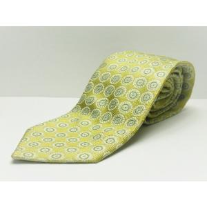 【英国の高級生地メーカーの素敵な1本】HIELD(ヒールド)|イギリス製|フラワー総柄ネクタイ|ゴールドイエロー系|シルク100%|USED|YM01019