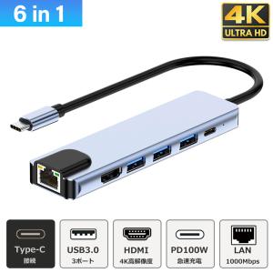USBハブ 6ポート USB拡張 4K HDMI PD充電 LAN hub USB-C USB3.0 変換 有線LAN 接続 アダプター スマホ Macbook Windows ノートPC