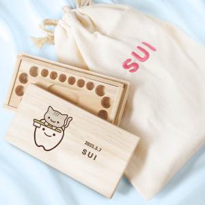 名入れ 刺繍巾着袋付き乳歯ケースセット ちびっこシリーズ 巾着袋 乳歯ケース セット 出産祝い 乳歯入れ 木製 名前入り 木箱 入れ物 保管 歯 小物入れ 内祝い