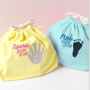 手形足形 巾着袋 ベビー 赤ちゃん お母さん 母 お父さん 父 カラフル 出産祝い 着替え入れ おむつポーチ 小物入れ 入れ物 名入れ こども 刺しゅう 刺繍