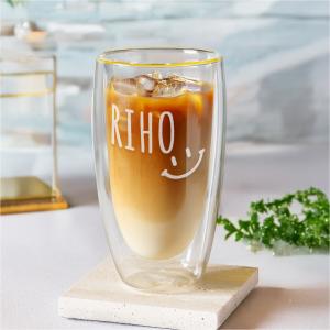 オーダーメイド ダブルウォールグラス 330ml メッセージ クリア グラス コップ ロックグラス 二重構造 耐熱 保温 ガラス 食器 刻印 名前入れ 名入り オリジナル