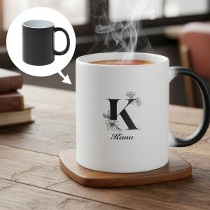 【お湯を入れると ?!】文字が浮かびあがる イニシャル マグカップ 温感 オリジナル 印刷 コップ ホワイト 孫 名入れ 名前入りマグカップ 陶器 食洗機対応