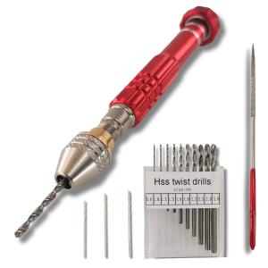 [kuriiro] ピンバイス ハンドドリル 精密 0.8〜3.0mm刃セット ドリル プラモデル 工具 15点セット krs7 (RED)