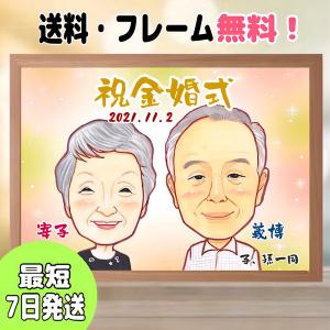 似顔絵 プレゼント 金婚式 還暦祝い 大人数 額縁付き お急ぎ無料 古希 喜寿 傘寿 米寿 お祝い 安い 両親 祖父母 女性 男性 そっくり 選べる背景