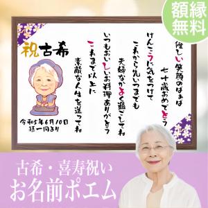 似顔絵 ポエム 古希祝い 誕生日 プレゼント 還暦 喜寿 傘寿 米寿 卒寿 百寿 母の日 名前詩 ネームインポエム 感謝 安い メッセージ 女性 額入り 70歳