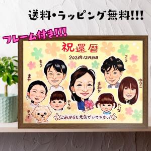 似顔絵 還暦祝い プレゼント 家族 大人数 額縁付き 送料無料 金婚式 銀婚式 古希 喜寿 米寿 卒寿 結婚記念日 ハチわれ子