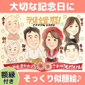 似顔絵 還暦祝い プレゼント 60代 大人数 古希 喜寿 傘寿 米寿 卒寿 百寿 金婚式 銀婚式 誕生日 家族 安い 短納期 お母さん 女性 両親 急ぎ
