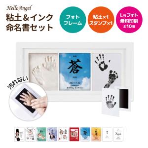 粘土手形付きフォトフレーム / 写真立て 出産祝い 名入れ 手形 足形 赤ちゃん 汚れない スタンプ ベビー 成長記録 誕生日 命名書 簡単 粘土 おしゃれ