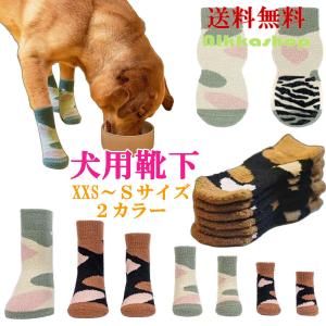 犬用ソックス 4個入り 犬 ハイソックス 靴下 ルームソックス 犬用 犬用靴下 犬 の靴下 老犬 フェザーヤーン 厚手 暖かい XXS-Mサイズ 肉球保護 汚れ防止 災害