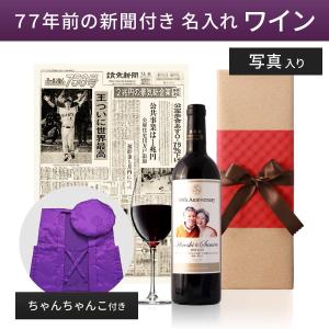 喜寿 結婚記念日 誕生日 お祝い プレゼント 母親 父親 上司 ちゃんちゃんこ ギフト 贈答 メモリアル新聞付き 名入れ 写真入り ワイン(赤or白) 750ml