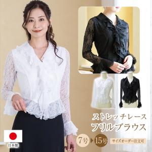 合唱ブラウス 演奏会ブラウス 白 黒 演奏会 コーラス 衣装 ストレッチ レース フリル ブラウス 合唱 フォーマル オーケストラ ピアノ 発表会 (bl651)