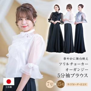 合唱ブラウス 演奏会ブラウス 演奏会 白 黒 フリル チョーカー オーガンジー 5分袖 ブラウス コーラス衣装 オーケストラ 合唱 フォーマル ステージ衣装(bl676)