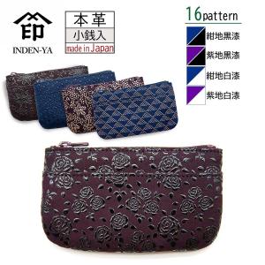 印傳屋 印伝 小銭入れ 紺地 紫地 黒漆 白漆 鹿革 16色柄 日本製 伝統工芸品 No.1002