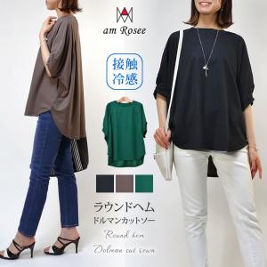 【送料無料】ラウンドヘムドルマンカットソー◆レディース ドルマン カットソー ラウンドヘム tシャツ ロンT プルオーバー 体型カバー トップス 丸首