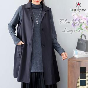 レディース ベスト ロング ジレ 羽織 アウター 前開き テーラード 無地 ポケット付き 体型カバー 美シルエット フレア 定番 ベーシック 春 秋