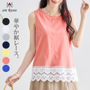 【送料無料】ティアードデザイン裾レースタンクトップ レディース インナー トップス タンクトップ 丸首 切替 上品 レイヤード