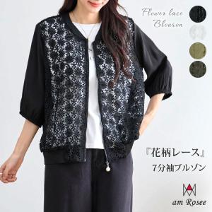 フラワーレース7分袖ブルゾン レディース ジャケット ブルゾン カーディガン トップス アウター 羽織 花柄 レース 七分袖