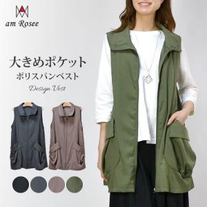 【送料無料】ビッグポケットスタンドカラーベスト レディース ジレ ロングベスト 羽織 ジップアップ ノースリーブ ゆったり 春 夏 秋 30代 40代 50代