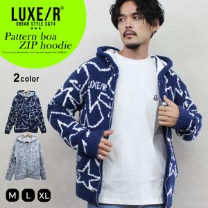 メンズ パーカー LUXE/R ラグジュ 総柄 星柄 ZIPパーカー コーデ ロゴ ブランド ジャガード 綿100% もこもこ タイト 30代 40代 秋服 冬服 人気 新作 細身