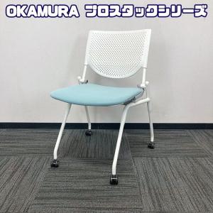 オカムラ プロスタックシリーズ ミーティングチェア[ネスティングタイプ] 8140WZ FXN4 背:ホワイト/座:セージ 2020年製 中古