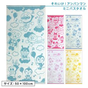 ミニバスタオル アンパンマン 50×100cm 綿100% 無撚糸 ジャガードタオル キャラクター バイキンマン ドキンちゃん 保育園 幼稚園 プール 水遊び メール便A