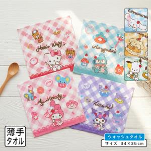 サンリオ ハンドタオル 34×35cm 綿100% 無撚糸 先染めジャガード スチームシャーリング 刺繍 ウォッシュタオル 保育園 幼稚園 女の子 nss wt1 メール便C