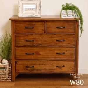 チェスト 木製 タンス 天然木 おしゃれ 幅80cm 4段 無垢 北欧 ヴィンテージ アジアン リゾート アンティーク 天然木 ブラウン 完成品