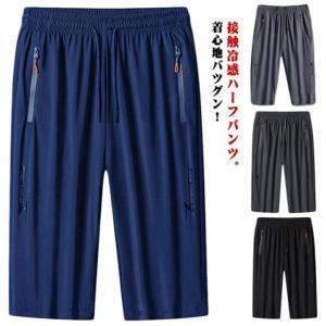 接触冷感 スウェットパンツ ファスナーポケット アイスシルクパンツ ワークパンツ 吸汗速乾 アイスシルクパンツ メンズ 9L ストレッチ 七分丈 パン