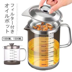 オイルポット あぶらこしポット 油こし器 ステンレス 耐熱透明ガラス 1000ml 1500ml 残留物をろ過 油ろ過器 蓋つき 滑り止め 家庭用 レ