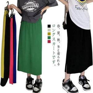 ボトムス マキシ丈 スカート ロングスカート ロングスカート タイトスカート リブ セルフカット ストレッチ バックスリット レディース ウエストゴム