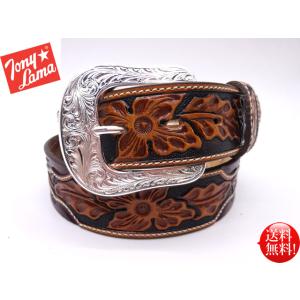 Tony lama アメリカ製 カービング スクエアコンチョ スタッズ 切替 ウエスタンベルト 【ブラウン】 メンズ レザー 本革 牛革 カントリー カウボーイ 衣装