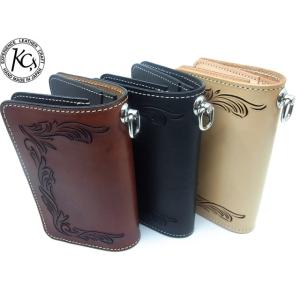 KC,S LEATHER CRAFT 日本製 ライダースウォレット ヘリテージ チーフコンチョ ハーフバスケット カービング 【ブラック/モカ】 長財布 アメ横 送料無料