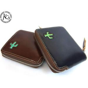 KC,S 本革 ラウンドジップウォレット カクタス ブラック ブラウン 黒 茶 メンズ 牛革 リザード トカゲ エキゾチックレザー 財布 ショート サボテン 送料無料