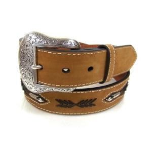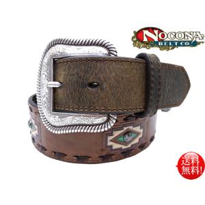 NOCONA ヌバック 5セントコンチョ レザー編み ネイティブ刺繍 ウエスタンベルト(38mm) 【ブラウン】 茶 本革 牛革 アメリカ カントリー カウボーイ 衣装