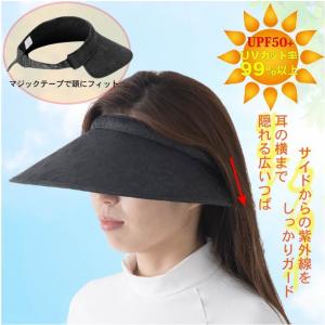 UPF50+ サンバイザー レディース 大きいつば お団子ヘアー ポニーテール まとめ髪