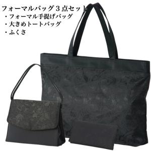 ブラック フォーマルバッグ 3点セット 卒業式 手提げ ジャガード 薔薇柄 冠婚葬祭 結婚式 葬式 法事 墓参り 入学式 卒園式