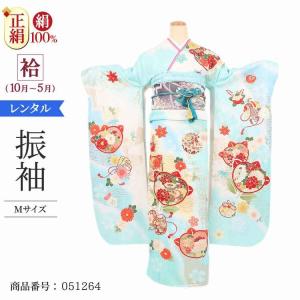 振袖レンタル 水色 振袖レンタル 成人式 1月 安い レトロ 結婚式 振袖 レンタル 正絹 フルセット モダン 古典柄 Mサイズ 水ぼかし橘紋手鞠