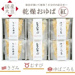 乾燥おゆば 紅【無添加・国産大豆100%】「乾燥ゆば3種」むすび20ヶ・きざみ20g・ゆばごろも20g(各2袋)化粧箱入り