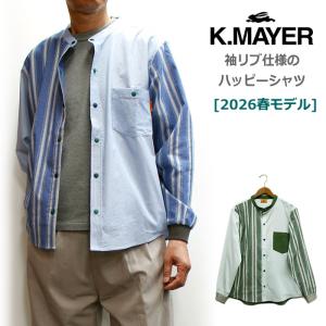新作!KRIFF MAYER クリフメイヤー 袖リブ仕様ハッピーシャツ(バンドカラー長袖シャツ スナップボタン 配色柄 アメカジ アウトドア)2026年春モデル No.2537000