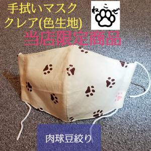 てぬぐい マスク カバー 肉球 豆絞り 猫 犬 足跡 立体型 色生地 大きめ 標準 日本製 手作り 特岡 木綿 注染 梨園染 戸田屋商店 当店限定販売