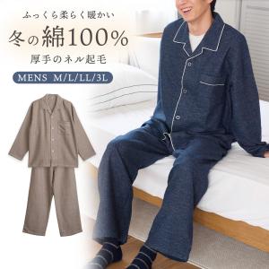 パジャマ メンズ 綿100% 長袖 秋 冬 前開き ボタン 二重構造 暖かい 柔らかい ネル起毛 無地 親子 おそろい リンク ギフト プレゼント 敬老の日 父の日