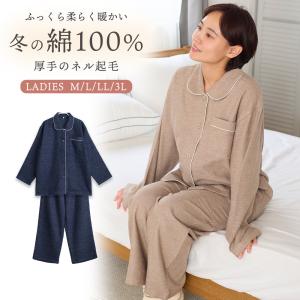パジャマ レディース 綿100% 長袖 秋 冬 前開き ボタン 二重構造 暖かい 柔らかい ネル起毛 無地 親子 おそろい リンク ギフト プレゼント 敬老の日 母の日