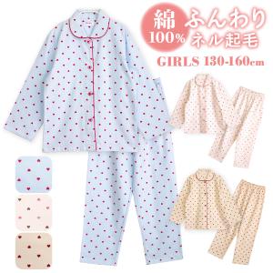 パジャマ キッズ 女の子 綿100% 長袖 冬 前開き ボタン ネル起毛 ハート ドット柄 子供 キッズ ジュニア ガールズ かわいい 親子 おそろい 130-160