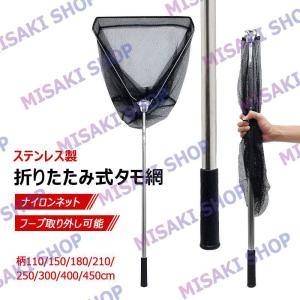【フープ取り外し可能】タモ網 玉網 伸縮 ステンレス製 ナイロンネット 防錆素材 軽量 釣りタモ 伸縮式 釣り網 調節可能 釣りネット 淡水海水両用 折り畳み式