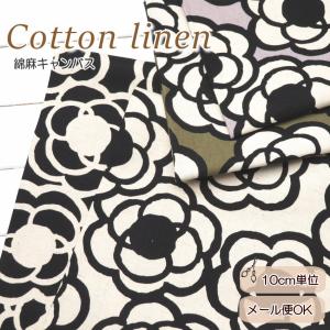 生地 北欧風 北欧 北欧テイスト 国産 綿麻キャンバス“カメリア”(5994)ツバキのお花のプリント う早この布 コットンこばやし