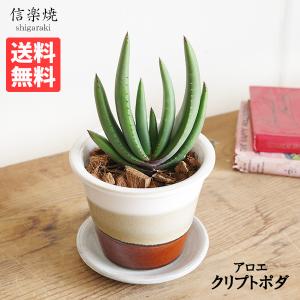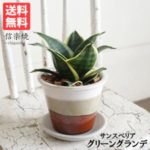 サンスベリア グリーングランデ 信楽焼 陶器鉢植え 茶色x白 卓上サイズ 送料無料 made in japan 小型 インテリア 鉢植え おしゃれ 中型 ミニ 即日出荷
