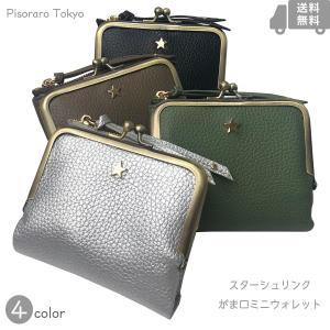 ピソラロ Pisoraro スターシュリンクがま口ミニウォレット ガマ札 二つ折り財布 口金財布 ミニ財布 コンパクト財布 プレゼント 4color 送料無料